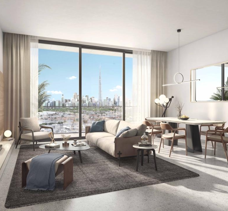 3-bedroom townhouses, all thoughtfully placed amidst breathtaking landscaping. Set against the backdrop of the iconic Burj Al Arab on the horizon, with views of the Dubai Hills Park’s lush greenery and the elegantly landscaped deck, Parkside Views offers you an idyllic sanctuary to call home, a walking distance from the prestigious Dubai Hills Mall.